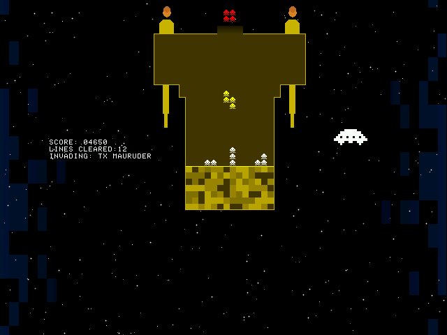 My attempt was to create a game combining Super Tetris and space action gameplay, but due the limited amount of time and lack of inspiration I ended up only on Super Tetris gameplay and an extra classic Tetris game mode.